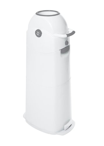 Product Description : Diaper Champ - 4031L- Poubelle a couches - Large - capacite +/- 75 couches - Blanc/Argent