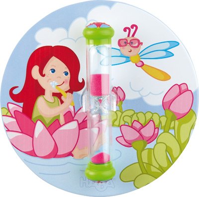 Sablier Elfe aquatique Féa - Spécial brossage des dents Retourner le sablier et se laver les dents pendant... trois minutes ! Avec ventouse pour surfaces lisses. En plastique, Ø 13 cm.
