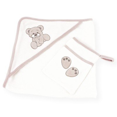 Ensemble cape de bain bébé à capuche + gant de toilette en éponge unie blanche 100 % Coton Gant de toilette bébé en éponge unie blanche avec biais contrastés en velour couleur gris 80%coton/20% polyester et broderie grise en forme d'empreintes de nounours Cape de bain bébé en éponge avec capuche intégrée en velours 80% Coton / 20% Polyester unie blanche avec broderie grise 'Nounours ' sur le dessus. Biais de la cape contrasté couleur gris en velours 80% Coton / 20% Polyester Taille unique : 70*70 cms