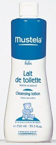 Pour nettoyer en douceur le visage et le siège de bébé, le lait de toilette Mustela convient particulièrement aux peaux sensibles.