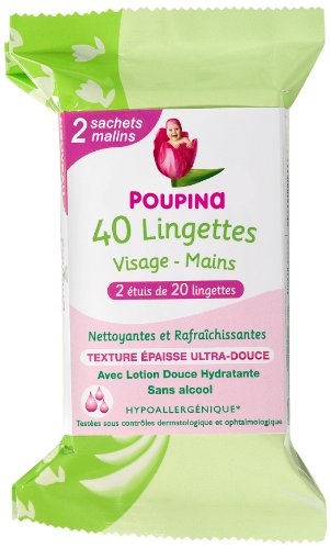 Save Price Poupina - 500155 - Hygiène et Soin Bébé - Lingettes Visage et Mains - 2 x 20 Lingettes - Lot de 3